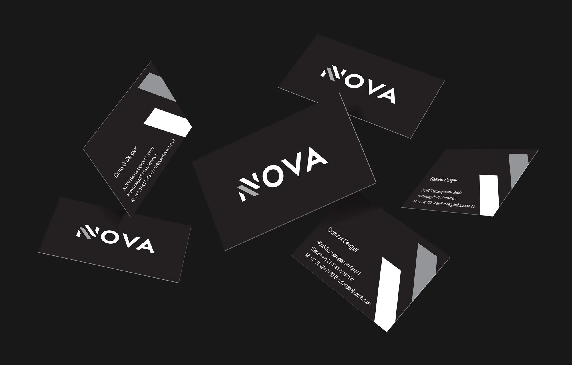 We developed a brand identity for NOVA Baumanagement, a Basel-based construction management company. The identity draws on bold geometric forms and a refined visual system to convey structure, precision, and trust—qualities at the heart of their work.